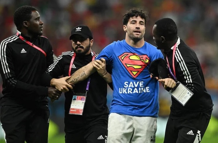 Y luego de la invasión de Rusia a Ucrania dejó su actividad como jugador en la segunda división de India para ayudar a cruzar refugiados a Polonia. La intervención duró apenas unos instantes. Una vez que el aficionado salió de escena, las acciones se reanudaron. Portugal terminó imponiéndose gracias a las conquistas de Bruno Fernandes (la primera, un centro que no alcanzó a desviar Cristiano Ronaldo; la segunda, de penal) y se clasificó a los octavos de final del torneo.