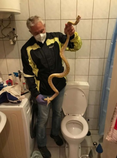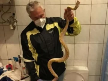 Un hombre en Austria fue mordido por una pitón de 1,6 m durante una visita al baño. El reptil, que aparentemente escapó del apartamento de un vecino, pudo haberse deslizado por los desagües. Una vez capturada la serpiente fue limpiada y devuelta a su dueño.