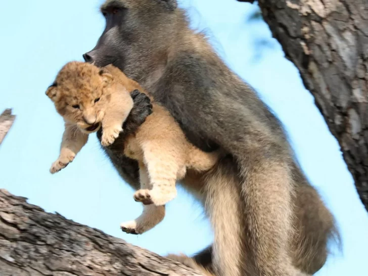 La imagen de un mono que sostuvo a un león cachorro y de este modo evitó que cayera desde un árbol recorrió las redes sociales y se volvió viral. Muchos usuarios no dudaron en comparar la escena con la película El Rey León.