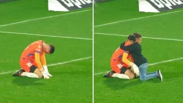 En las imágenes se ve que el niño entró al campo de juego y, al ver que el arquero se encontraba de rodillas lamentándose por el resultado, se acercó y lo abrazó para consolarlo.