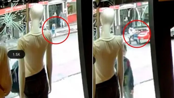 Las imágenes captadas por la cámara los muestran a ambos cuando salen de un local, empiezan a caminar y de repente el menor se suelta de la mano del hombre. Instantáneamente cruza la calle corriendo sin mirar y es impactado por el colectivo que circulaba por la Avenida Rivadavia.