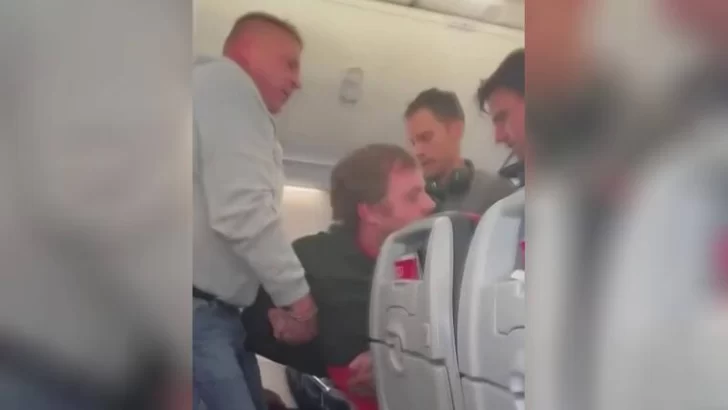 En un vídeo difundido en redes sociales desde la tarde del martes, se ve a otros viajeros impidiendo que el hombre gire la manija de una de las escotillas de salida.