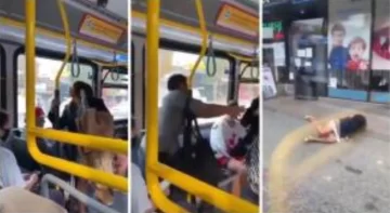 Entonces la víctima se levantó rápidamente y respondió a la mujer con fuertes empujones que la hicieron volar hacia la calle, ya que el colectivo se encontraba en una parada con las puertas abiertas.