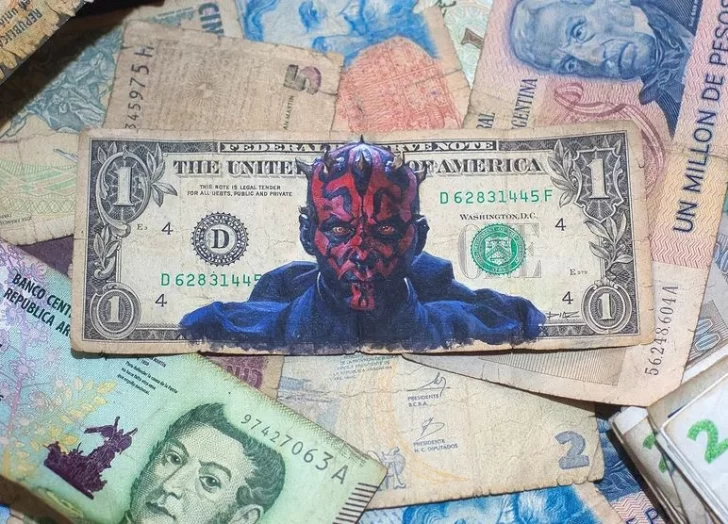 En ese sentido, cuando escuchó a especialistas decir que el dólar podría llegar a valer $400, tomó dos billetes de $200 y uno de 1 dólar y dibujó a “Tiburón”, el personaje de la película de Steven Spielberg.