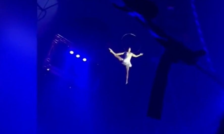 El episodio se volvió viral por lo impresionante de la caída: la acróbata brasileña estaba suspendida en el aire colgada de la nuca a un aro en lo que se conoce como "la Lira" cuando de repente se desprendió y cayó al vacío.
