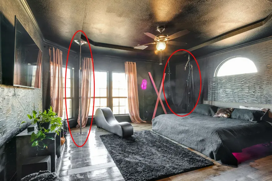 Sin embargo, los dueños de la propiedad decidieron dejar algunos objetos personales en la habitación principal que sorprendieron a los visitantes. Entre las imágenes publicadas, se pueden identificar desplegados una gran variedad de juguetes y equipos sexuales en la suite principal.