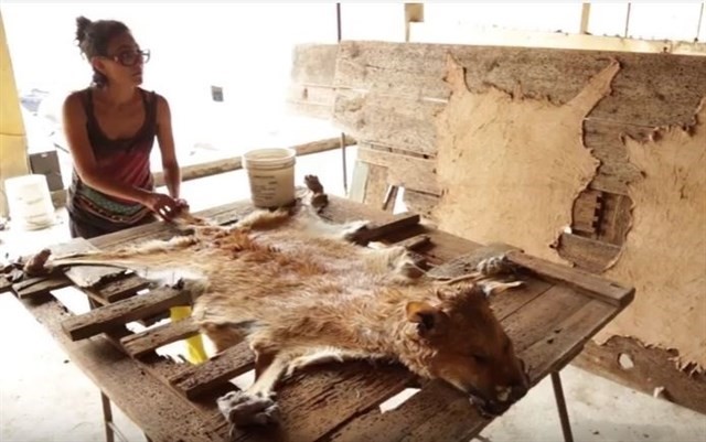Y agregó que “así para el primer traje que diseñé usé seis cadáveres de perros, porque también hice una chamarra, bolsa, botas y sandalias. Todo fue armado con restos de un pastor alemán y perros criollos”.