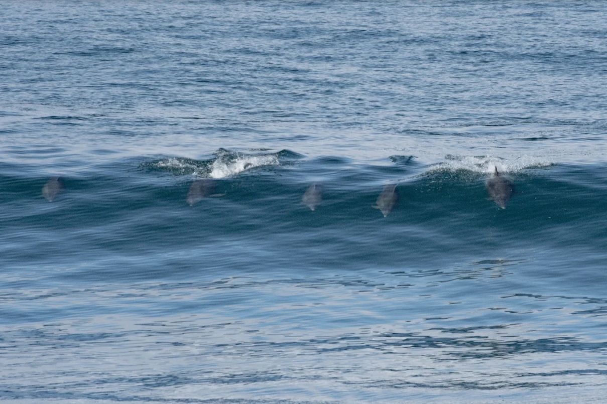 Le faltan cuatro finales y la tesis: el eje será el comportamiento y uso de hábitats de los delfines nariz de botella (Tursiops truncatus) que fotografió surfeando.
