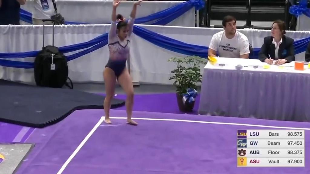Samantha Cerio was making her first pass when she fell on the blind landing. The crowd gasped as Cerio, a senior on the team, attempted a handspring double front but fell to the mat and screamed out in pain pic.twitter.com/BYP0cZNezO