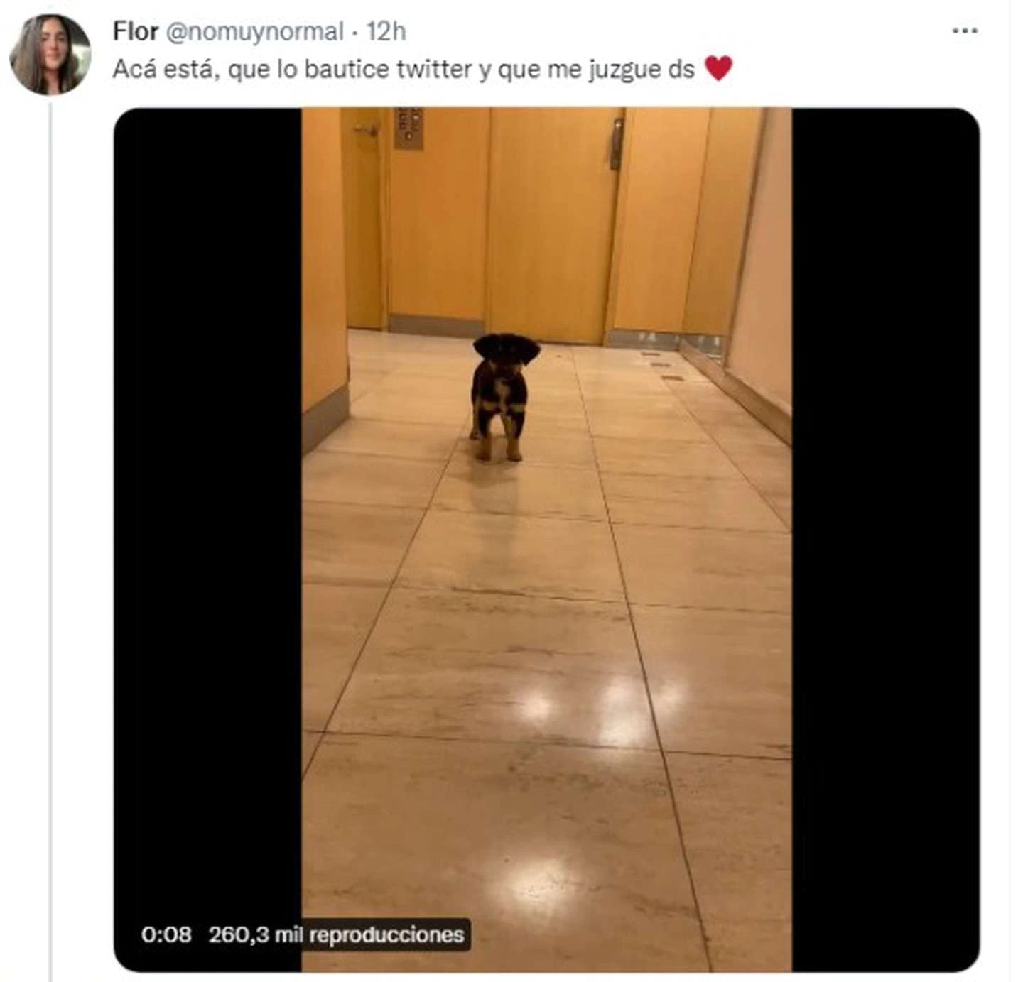 “Lo bauticé Twitter”, escribió la joven en un posteo junto a un video del perrito.