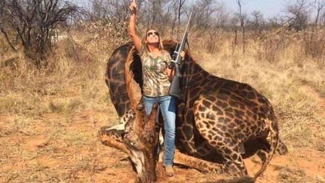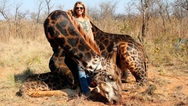 "Descubrí esta rara jirafa negra toro y la aceché durante bastante tiempo. Sabía que era el elegido. Tenía más de 18 años, 4000 libras", escribió Tess Thompson Talley, una estadounidense que vive en Kentucky, al compartir en Facebook como había matado al animal en Sudáfrica. Miles de personas la repudiaron y la criticaron luego de haber asesinado a la jirafa.