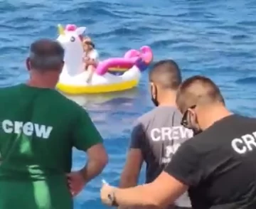 El hecho ocurrió en la costa de Antirrio, en Grecia. La corriente del mar provocó que una niña, de cuatro años, se alejara de la playa, montada en su flotador de unicornio, en la que se encontraban sus padres y por medio de un ferry es que fue rescatada.