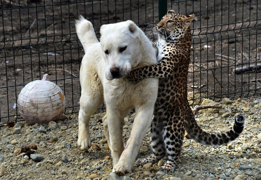La noticia llenó de ternura las redes sociales: Elsa, una cachorra de siete meses de perro pastor, es la encargada de criar a una bebé leopardo africano huérfana de sólo 5 meses de edad, en el zoológico de Sadgorod, en Vladivostok, Rusia.