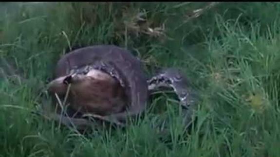 En el video se ve como poco a poco fue devorando una hiena hasta el punto que se la tragó por completo.