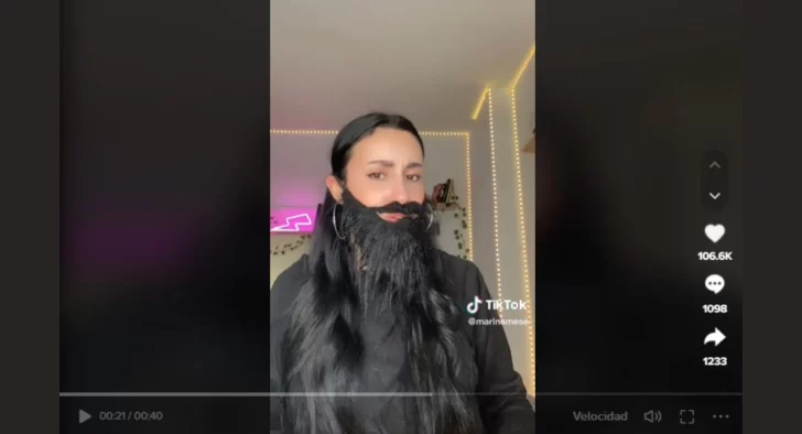 A través de un video publicado en su cuenta de TikTok, la joven contó lleva la pieza de utilería adentro de su cartera para sentirse más segura. “Yo voy andando por la calle sola de noche, cojo, abro el bolso y me pongo la barba. Y me siento genial y muy segura”, explicó @marinamese.