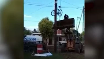 Todos los días, al llegar a su trabajo en Córdoba, Miguel, un obrero de 35 años, cuelga su bicicleta de un poste de luz con la pala mecánica que él mismo maneja.