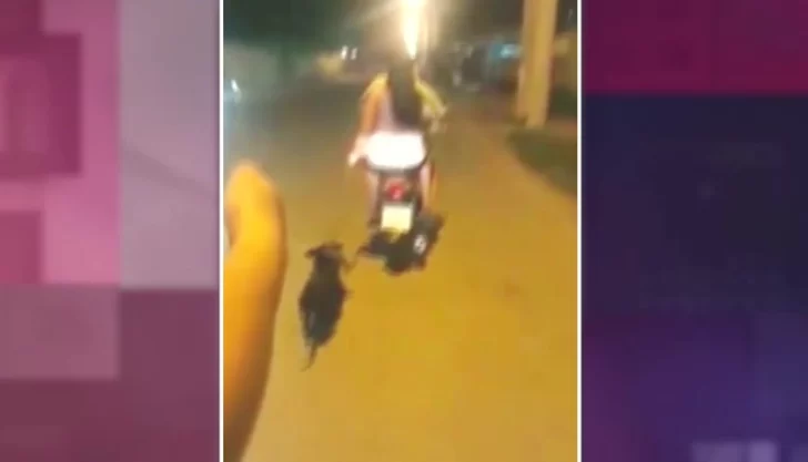 Indignación causó en Santiago del Estero una pareja que arrastraba a su perro con una cadena en su moto.