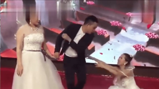 El episodio, con mucho tinte de escándalo, fue registrado en la filmación de uno de los asistentes a la boda y en las imágenes se puede ver como la expareja del novio se arrodilla y trata de convencerlo de que no se case y le de una oportunidad. Sin embargo, este se niega y aunque al principio trata de mantener el control, pero pierde la paciencia cuando su actual novia sale corriendo del lugar.