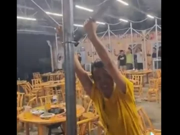 Las imágenes del hecho se difundieron a través de las redes sociales. Según trascendió, el pasado lunes, el dueño del restaurante le solicitó a los clientes que lo ayudaran a hacer contrapeso en las columnas que sostenían el techo del lugar.