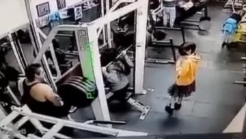 Luego de una breve charla, la mujer se acerca a las pesas y se acomoda en el banco de la máquina. Intenta levantar los 180 kilos sobre sus hombros, pero al momento de soltar el peso, no resiste y la barra cae encima suyo, directamente en la zona del cuello.