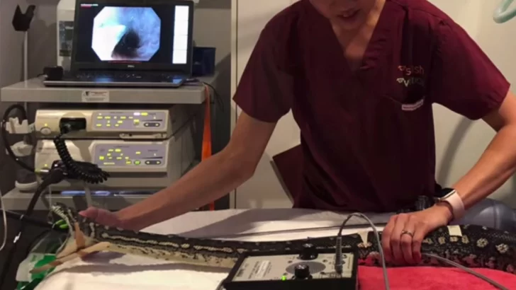Los veterinarios del Hospital Especialista en Animales Pequeños (SASH, por sus siglas en inglés) ubicado en Nueva Gales del Sur (Australia), recientemente publicaron un video en Facebook mostrando un insólito caso. Se trata de una pitón alfombra (Morelia spilota) de 18 años y 3 metros de largo, llamada ‘Monty’, que necesitó ayuda después de tragarse una toalla de playa entera.