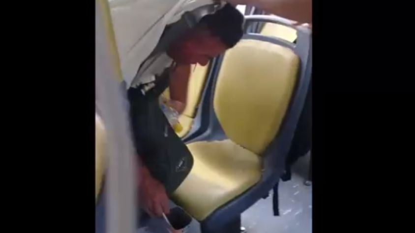 De manera inmediata, la pasajera empezó a gritar y le avisó al chofer lo que estaba sucediendo. En el video se puede observar cómo el acosador se tapa el pantalón con el bolso y mira por la ventana, cómo si nada hubiese pasado.