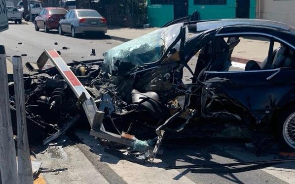 Un conductor imprudente protagonizó un accidente vial cuando intentó cruzar un paso a nivel del metro de Los Ángeles (California, EE.UU.) en un momento inadecuado y un tren a toda marcha embistió su auto el pasado 3 de marzo.