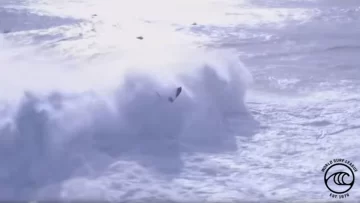 El incidente ocurrió el 11 de febrero durante el torneo World Surf League, celebrado en la localidad de Nazaré, al norte de Lisboa. El surfista luso Alex Botelho estaba siendo socorrido por una moto acuática, cuando dos olas chocaron entre sí, y como consecuencia tanto Botelho como el rescatista salieron volando por el aire.