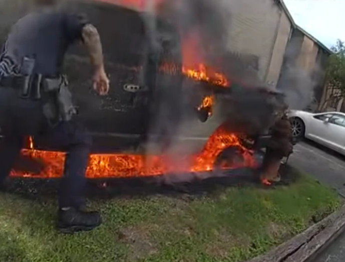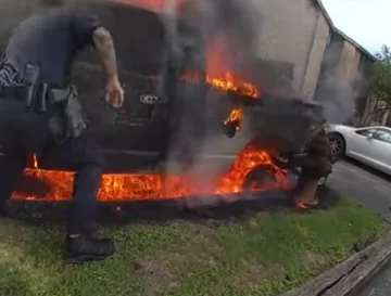 La policía de Austin, Texas, en Estados Unidos, hizo un impresionante rescate de un hombre mientras se incendiaba su auto en plena calle. Las imágenes quedaron grabadas en la cámara de los oficiales que estuvieron a cargo del operativo.