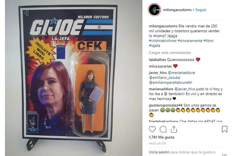 La publicación de Instagram tiene casi 2 mil likes y cientos de comentarios. En la imagen, el packaging exhibe el rostro de Cristina Kirchner con tres inscripciones: "La Jefa", "CFK" e "incluye el minilibrito".