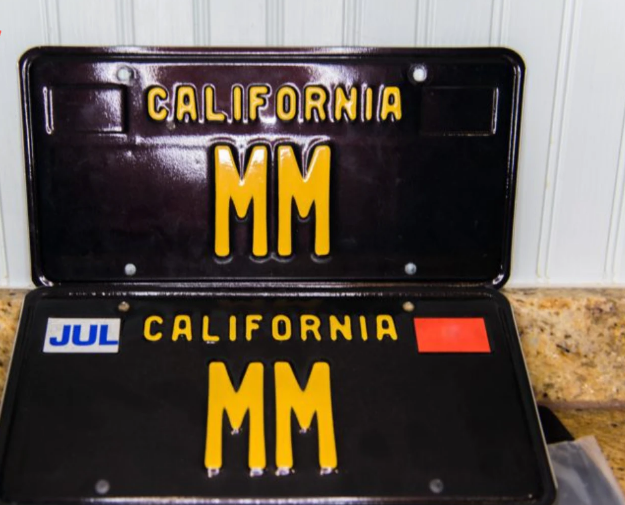 En California viven cerca de 40 millones de personas y hay más de 35 millones de vehículos registrados. Allí se emiten placas de entre dos y siete caracteres para el público en general, por lo que las de dos caracteres son las más exclusivas. Hay sólo veintiséis placas con letras repetidas entre la AA y la ZZ, y apenas nueve con dos números repetidos (de 11 a 99).