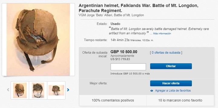 "Del casco no supe nada más hasta hace cuatro años, cuando me enteré que lo estaban subastando en Londres. Resulta que un soldado inglés lo había visto tirado en la calle en Malvinas y se lo llevó como souvenir. Cuando murió, los hijos decidieron rematarlo. Un conocido mío se enteró y me contó. No lo podía creer. Era mi casco", recuerda el ex combatiente.