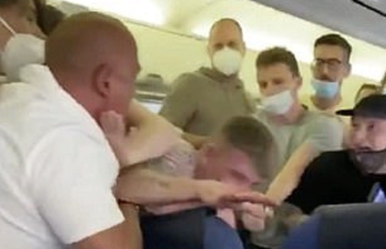Un grupo de pasajeros se agarró a las trompadas el viernes pasado a bordo del vuelo 1495 de la compañía KLM, que viajaba de Ámsterdam a Ibiza. Según reveló un vocero de la empresa, todo empezó por dos hombres que presentaban "signos de ebriedad" y que se negaron a colocarse el tapabocas, pese a que es obligatorio.