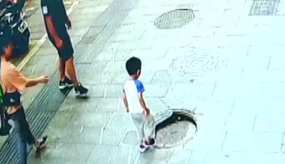 Un nene de tres años cayó por una alcantarilla en el sur de China y debió ser rescatado por su padre, ante la anonadada mirada de transeúntes que pasaban por el lugar. El incidente quedó registrado por las cámaras de seguridad.