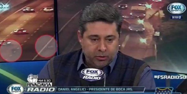 Daniel Angelici daba un reportaje en el programa Fox Sport Radio, cuando detrás suyo, por las pantallas de TV -que mostraban el tránsito en Acceso Norte y General Paz-, se observó cómo dos sujetos robaban dentro de un colectivo y se escapaban cruzando peligrosamente la autopista.
