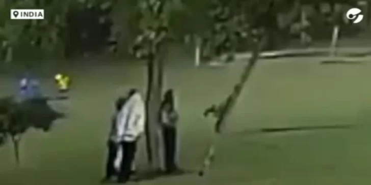 El hecho ocurrió en Gurgaon, en el estado de Haryana en la India y las cámaras muestran cómo cuatro personas se ocultaban de la tormenta bajo un árbol en medio de una plaza, sin pensar que el impacto de un rayo los dejaría en el suelo.