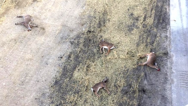Catherine Veerhusen y su esposo conducían por una carretera de Cedar Rapids (Iowa) y bajaron la velocidad al ver al grupo cruzando la vía, tratando además de advertir a otros vehículos de hacer lo mismo. Pero los animales continuaban asustados y buscando alguna salida.