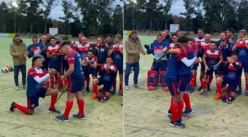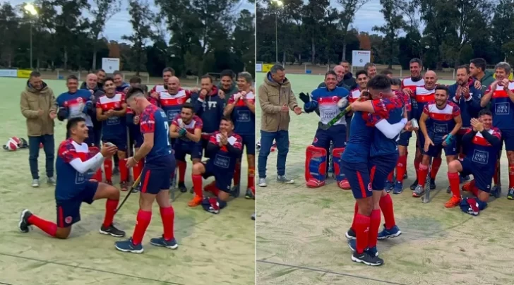Gonzalo y Fernando, dos jugadores de hockey sobre césped del Jockey Club, vivieron un momento inolvidable después de ganarle a CEF N°54, un clásico de la zona, en el torneo de la Unión del Centro. En medio de los festejos, uno de ellos sorprendió al otro y le propuso casamiento ante la mirada de compañeros, amigos y familiares.