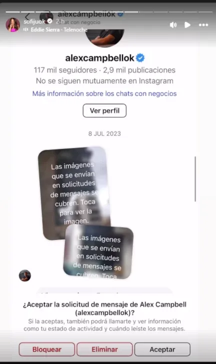Sorprendida de la acusación, la modelo contó que buscó quién era el marido de la periodista y se fijó en sus mensajes directos. “Se los voy a mostrar porque no voy a permitir que nadie ensucie mi imagen. Yo no tengo nada que ver con esta persona, ni idea. Y verán, nunca ni le respondí ni nada”, señaló.