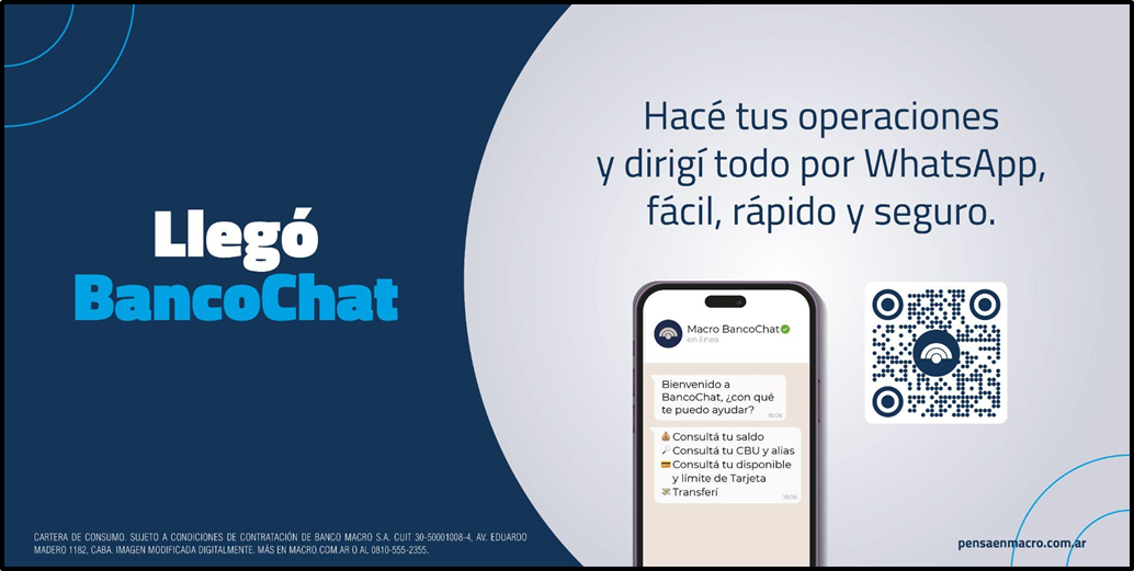 BancoChat representa un paso significativo hacia el futuro de la banca, brindando comodidad, eficiencia y accesibilidad al alcance del usuario. Banco Macro se compromete a evolucionar continuamente la experiencia del cliente y brindar soluciones innovadoras que simplifiquen los procesos diarios.