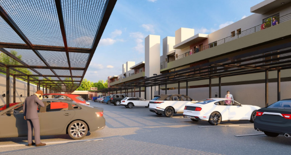 Esta propuesta consta de 57 departamentos con cocheras semicubiertas. Su diseño comprende dos bloques de departamentos con jardines ideales para la recreación, el descanso y el esparcimiento, que logra la privacidad y distanciamiento necesario entre las distintas unidades. Será un lugar exclusivo para quienes desean una vida tranquila y confortable.