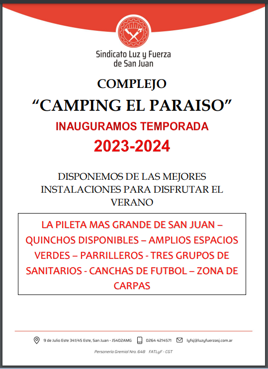 Complejo “Camping El Paraíso” inaugura temporada 2023 – 2024