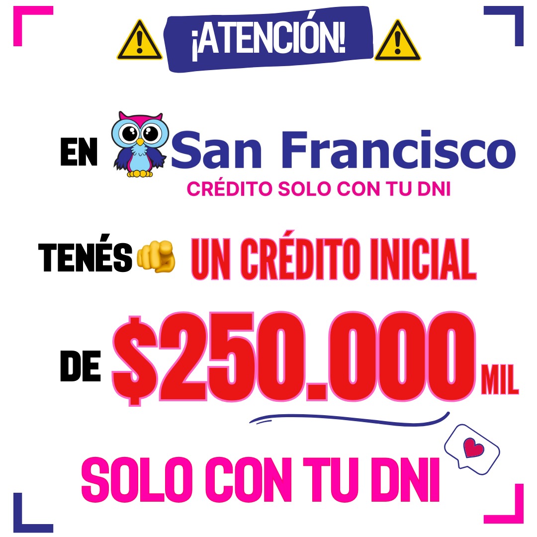 Los medios de pago son amplios, pero el más elegido es el crédito de la casa, para el cual solo solicitan tu DNI y un celular para poder contactarte. También reciben todas las tarjetas y las mejores ofertas y sorteos encontralas en sus redes sociales: Instagram @sanfrancisco.arg y Facebook: San Francisco Hogar.