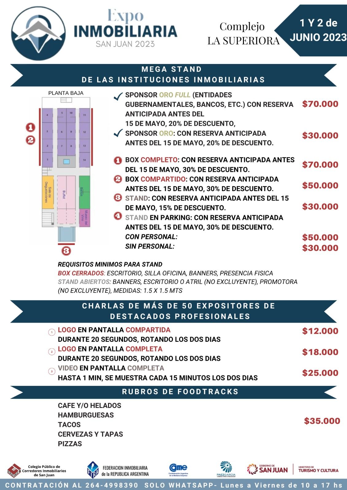 Te invita a la Expo inmobiliaria San Juan, a realizarse los días 1 y 2 de junio en el complejo La Superiora del departamento Rawson. Este evento que lleva como consigna la de “promover el desarrollo, emprendimientos, inversiones, mesas de negocios y turismo de la provincia”.