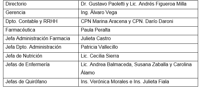 Sanatorio San Juan cuenta con una planta de 68 trabajadores, de los cuales 45 son mujeres, representando un 66,18%. El 71,43% de los cargos jerárquicos son ocupados por mujeres, como se puede ver en el siguiente cuadro:
