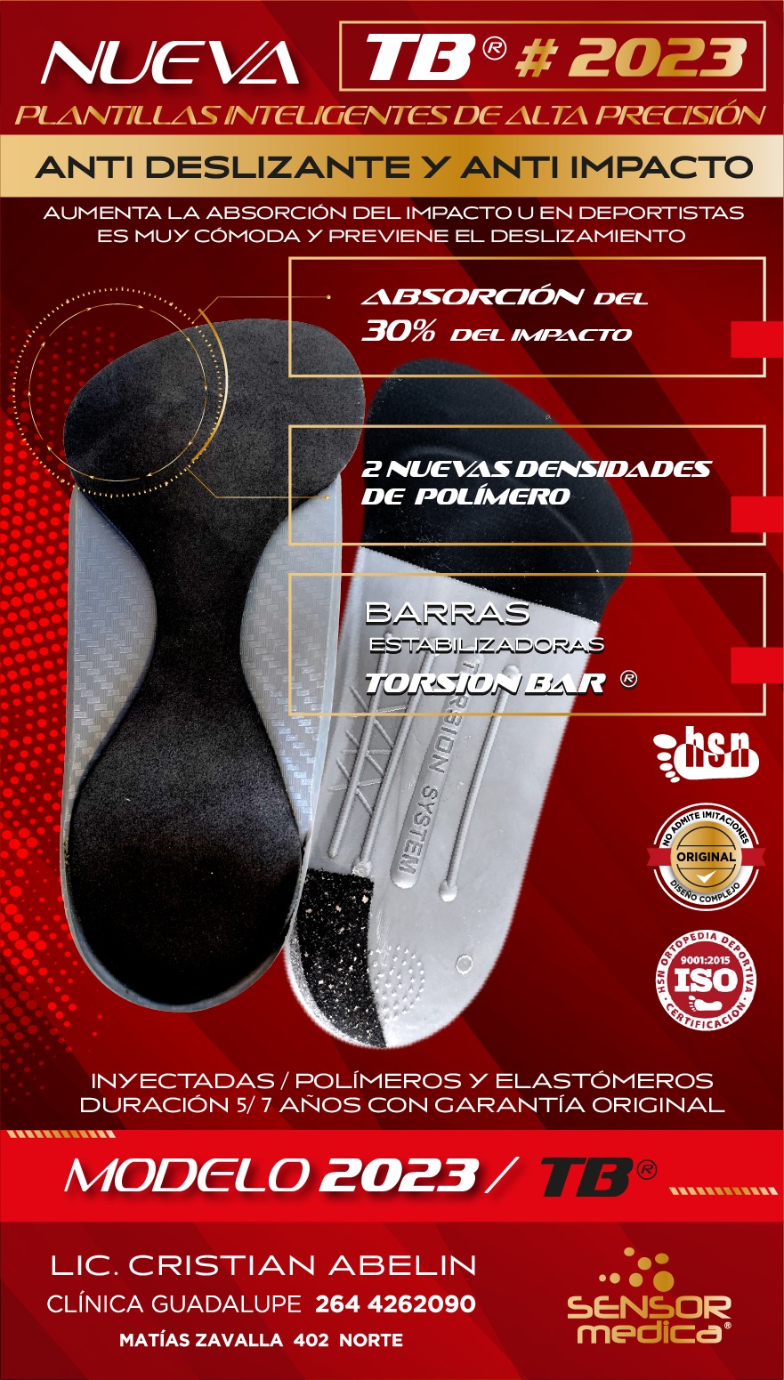 La solución a tus pies: presentamos nuevo modelo mejorado en su cubierta con material antideslizamiento y absorcion de estres de impacto y cizallamiento , Mayor confort /estabilidad. TORSION BAR 2023 ® Plantillas inteligentes. Nuevas densidades de polímeros y elastómeros, fabricación única HSN®.