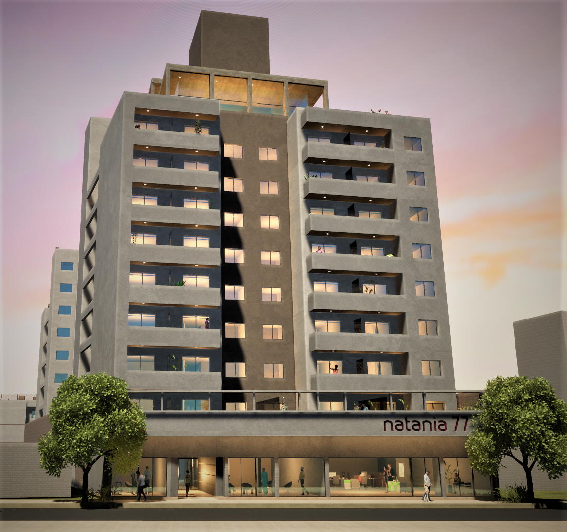 El emprendimiento se caracterizará por sus ambientes amplios y luminosos, espacios comunes y terrazas. Las 3 torres de Natania 77 se comunicarán a través de una gran planta baja con sectores de esparcimiento y una plaza central en el corazón del emprendimiento. Construido bajo estándares de calidad Modelo Natania, la obra se proyecta en tres etapas, iniciando con la edificación de la torre Norte sobre Ignacio de la Roza, que contará con 65 departamentos y 50 cocheras y cuya entrega está prevista para el segundo semestre del 2025.