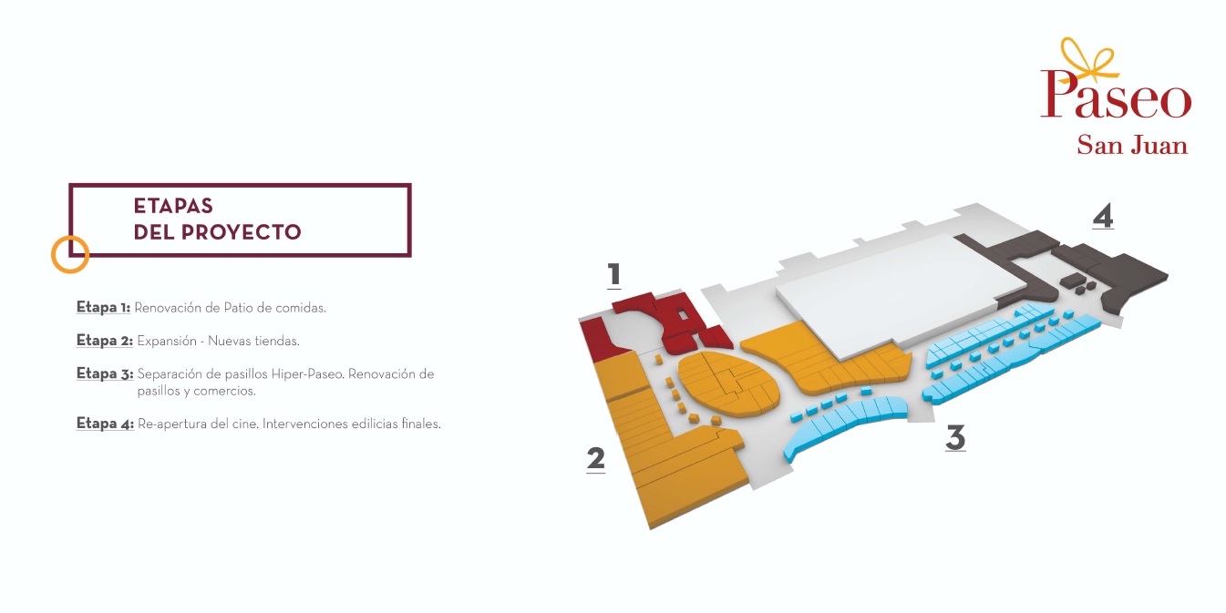 4 fases de desarrollo. Actualmente, primera etapa al 90%: Renovación patio de comidas y sala de juegos