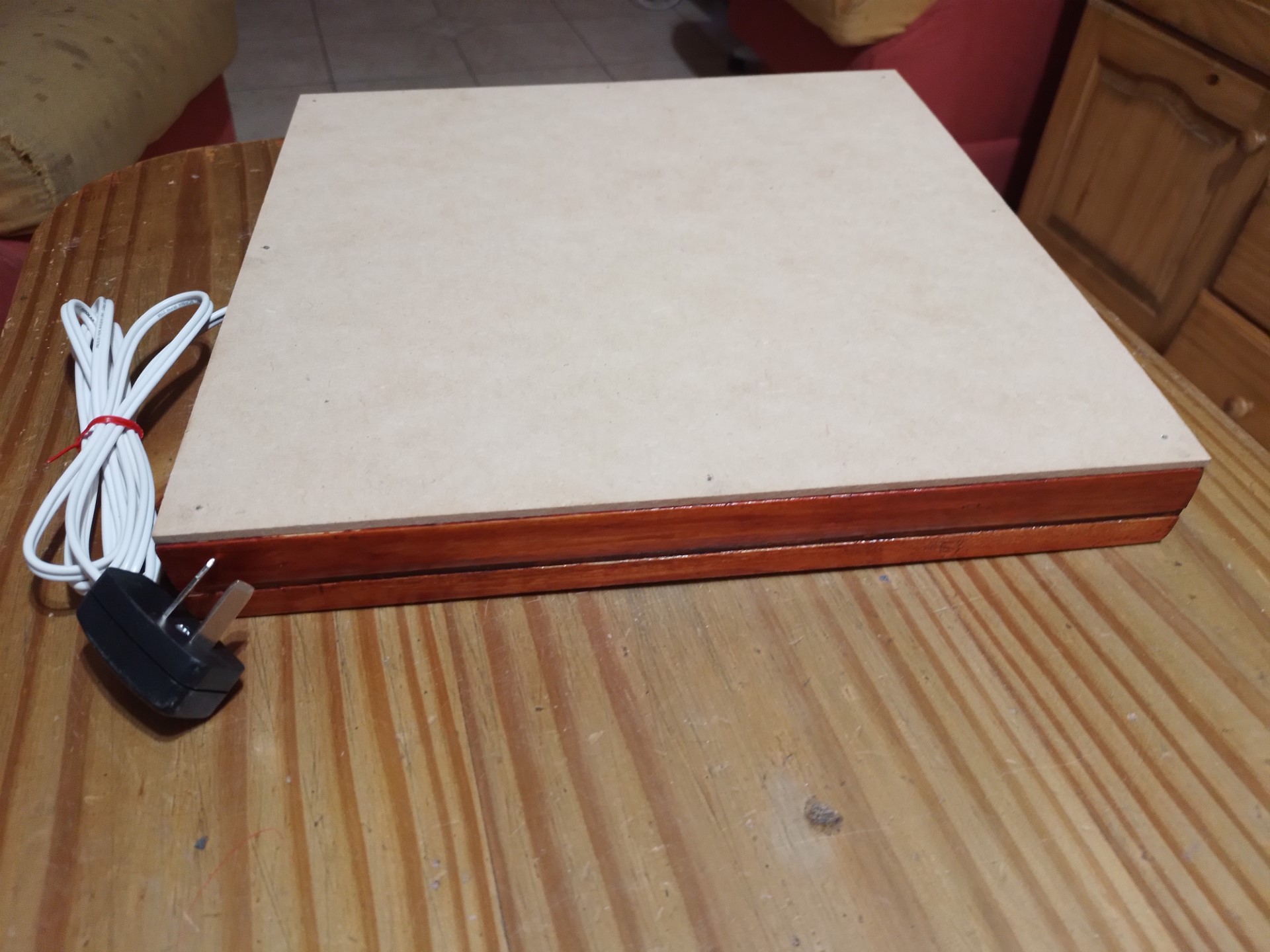 Su construcción es de madera de (30x30x2) cm, que aloja en su interior un conductor muy delgado formando un enrejado, cuyo consumo no supera los 40 Watt.