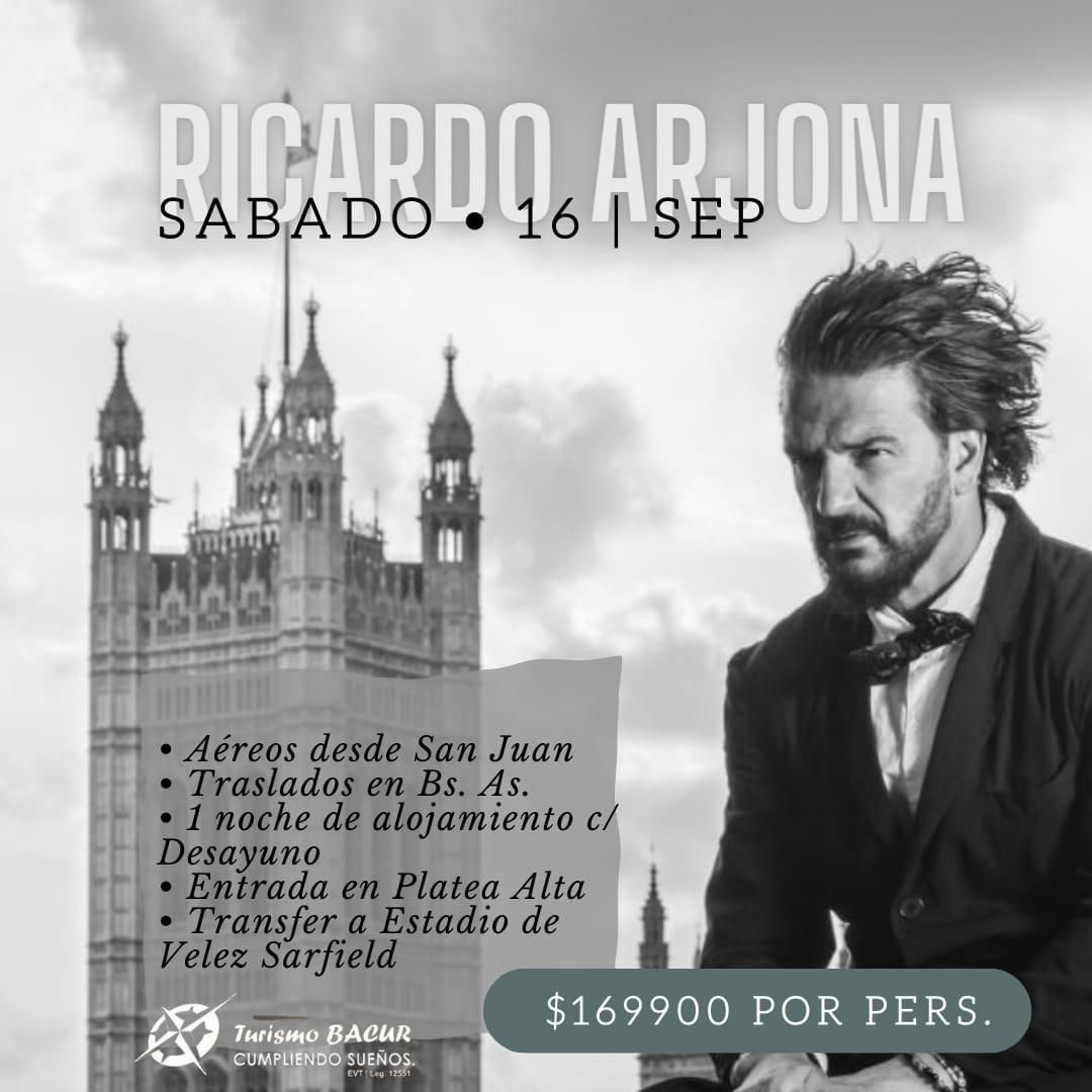 Turismo Bacur te lleva a ver a Ricardo Arjona a Vélez